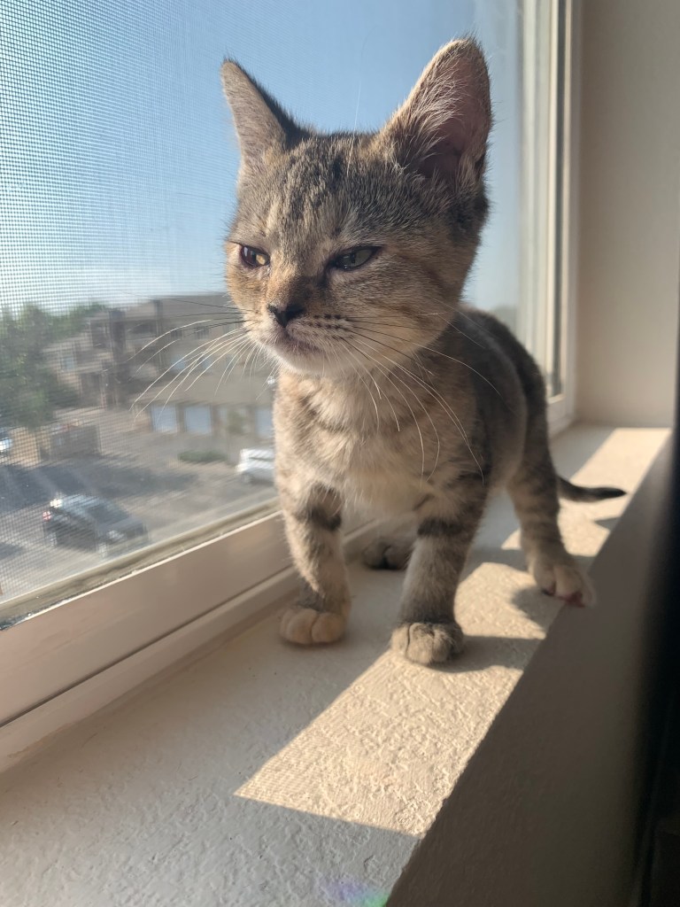 After arriving from Kansas, she and her foster mate both had upper respiratory infections (URIs). I quickly learned that URIs can be treated with oral antibiotics, but that it can sometimes take a long time for the infection to completely leave a kitten’s little body.