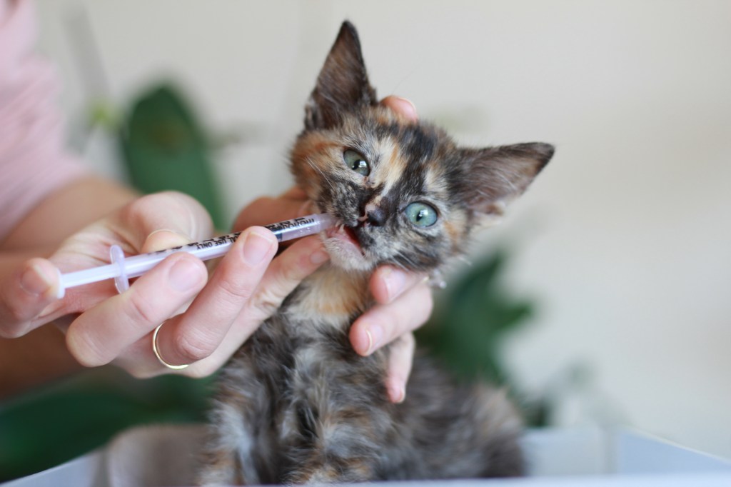 - Monitoring the kitten’s weight at least once a day to make sure they’re not losing weight.