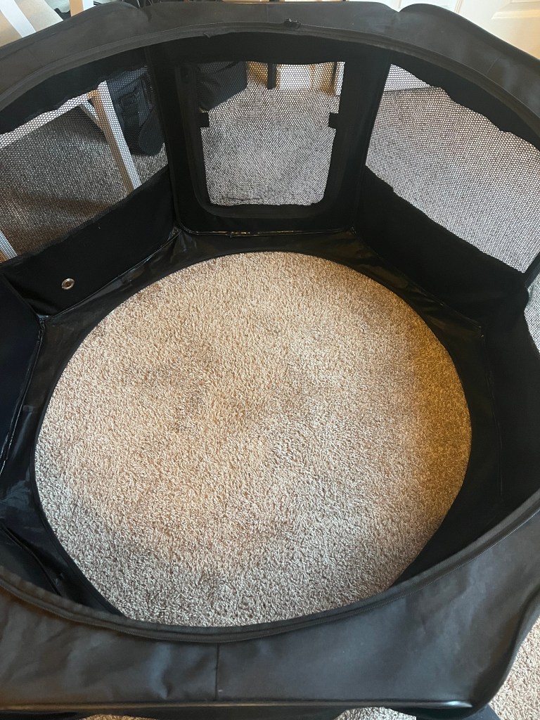 Use the disinfectant to heavily spray down soft-sided playpens and scratching posts, and then let them sit on a towel to dry. If the soft-sided playpen you’re using has a removable top and bottom, you can add those to your load of laundry.